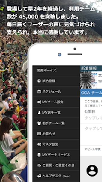 Ứng dụng được chia thành ba phần: GO cho đội, SSS cho vận động viên và CC cho người hâm mộ. GO có thể sử dụng độc lập, nhưng SSS và CC là cần thiết để hỗ trợ đội sử dụng GO. CC là một ứng dụng cần thiết để xem tin tức mới nhất, cổ vũ và xem thông tin đội.